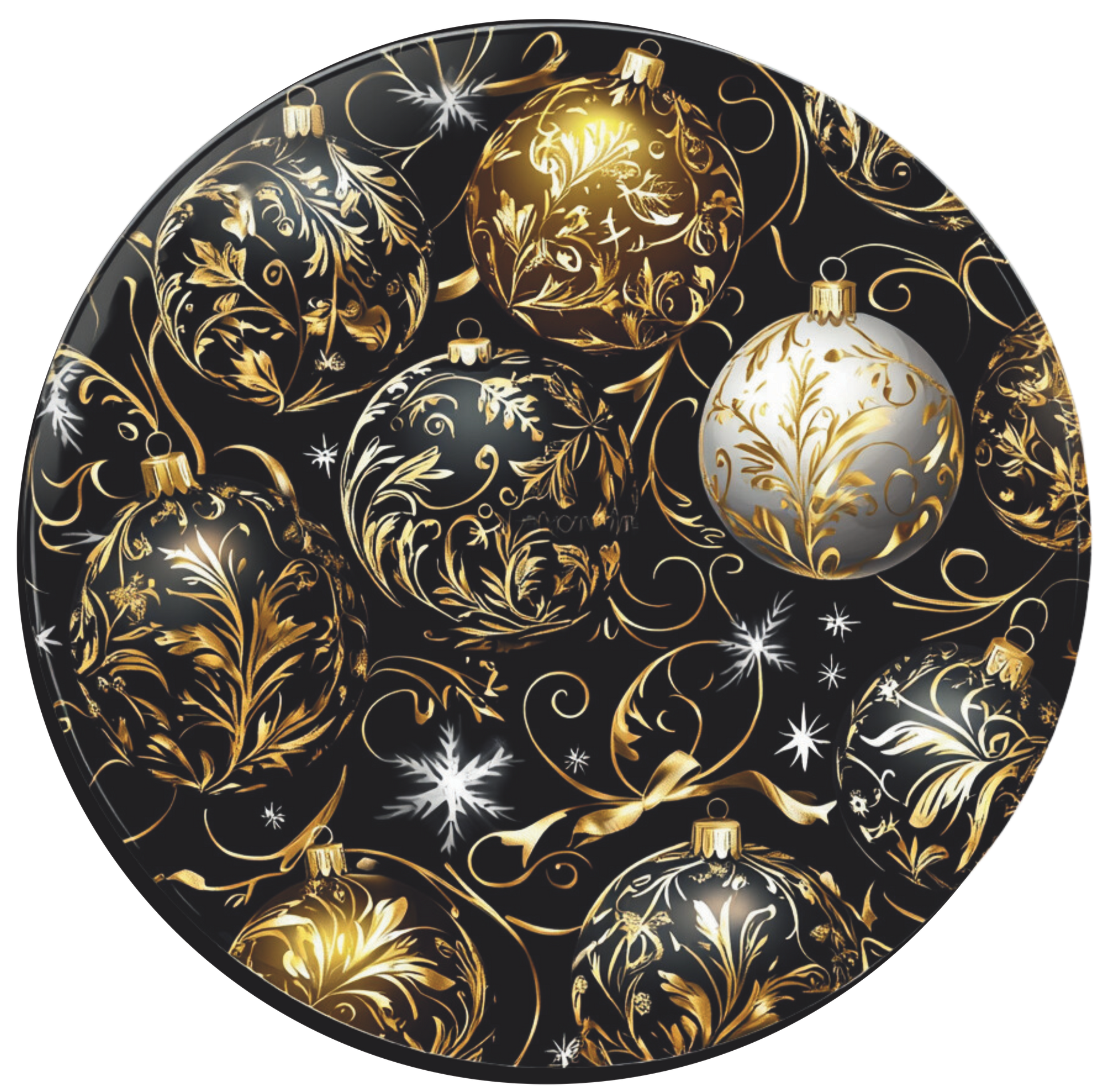 Black, silver and Gold Ornaments with gold glitter Round Sign