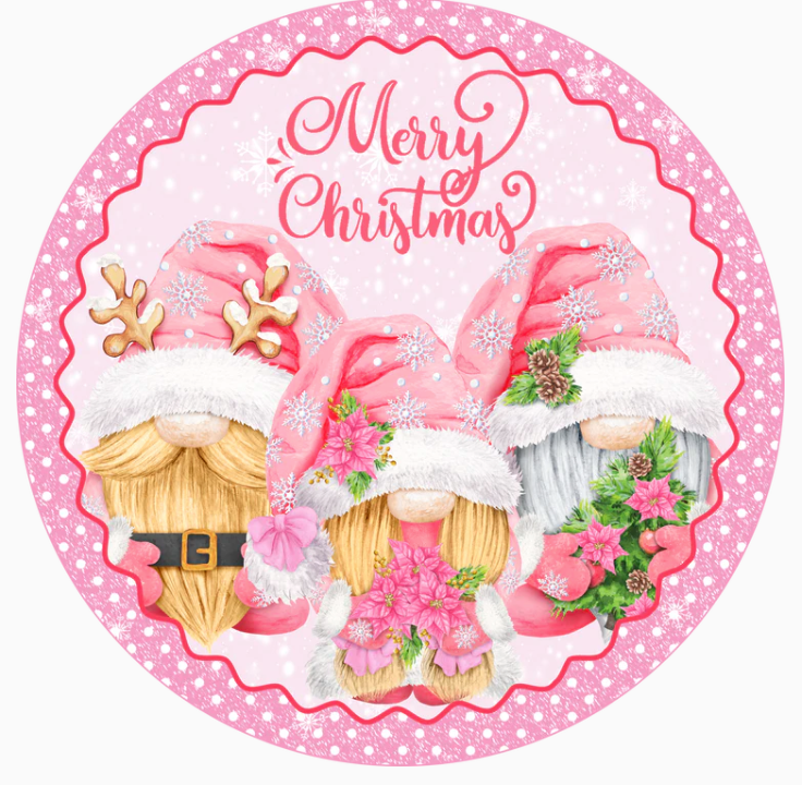 Pink Merry Christmas Gnome Round